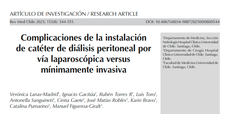Médico Internista y Nefrólogo, Programa de Diálisis Peritoneal, Hospital San Juan de Dios, Hospital Clínico Mutual de Seguridad.